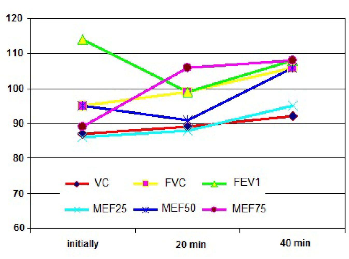 Hence, the conducted monitoring of the external respiratory function indices shows mixed reactions of the bronchial tubes of the respiratory tract, the autonomous nervous system, and the local cellular and humoral factors.
