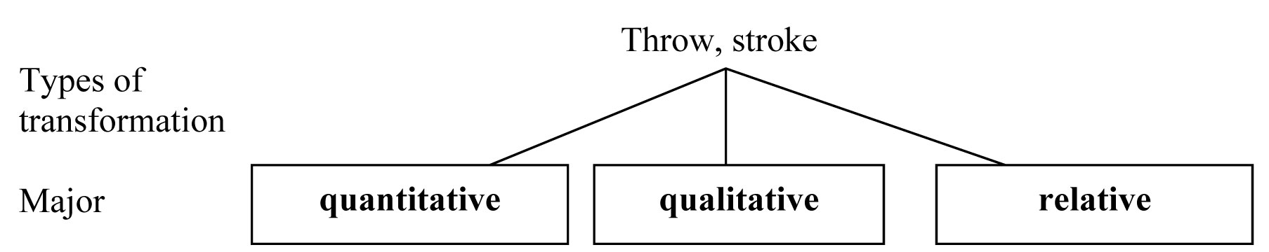 Results and discussion. Changing the number of elementary movements in a throw (stroke), we conduct a quantitative transformation of the throw. The relative transformation of the throw (stroke) presupposes changing the sequence of performance of elementary movements. The qualitative transformation presupposes the ability to change grips, positions, efforts and elementary actions (Fig. 1).