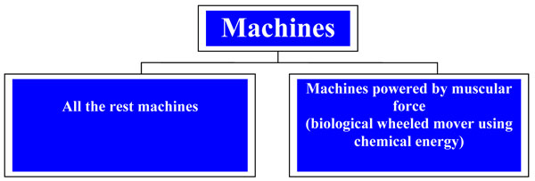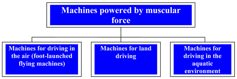 Fig. 2. Block diagram for the classification of machines powered by muscular force, depending on the environment in which they are driven
