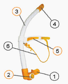 1 - case with mouthpiece, 2 - loading device with control handles, 3 - breathing tube, 4 – spray deflector, 5 - headrest, 6 - fastening belt.