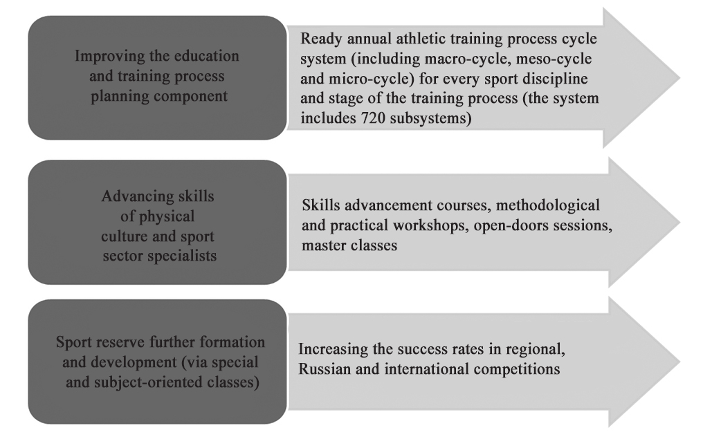 Studies of the planning documentation quality, relevance and compliance to the modern requirements in the context of the coaches’ special background quality showed that even а formal special background cannot guarantee the planning process quality. It may be due to the fact that the planning responsibility prior to the above project has never been ranked among the top priorities and, hence, the planners lacked practical experience in planning documentation. As a result of the monitoring project, the relevant management decisions were made to improve the education and training process efficiency at municipal sport schools. In addition, practical recommendations were made to help adjust the design and content of the training process planning component (see Figure 5).