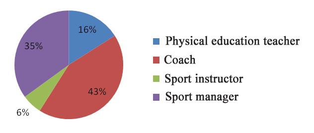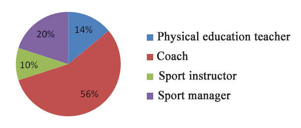 Study results and discussion. Our analysis of the students’ polling data on the future vocational preferences of the Physical Culture Institute (PCI) bachelors found 4 group preferences in the national physical culture and sports sector (see Figure 1), being as follows: 55% of the respondents preferred coaching; 30% sport management; 10% physical education teacher and 5% sport instructor career.