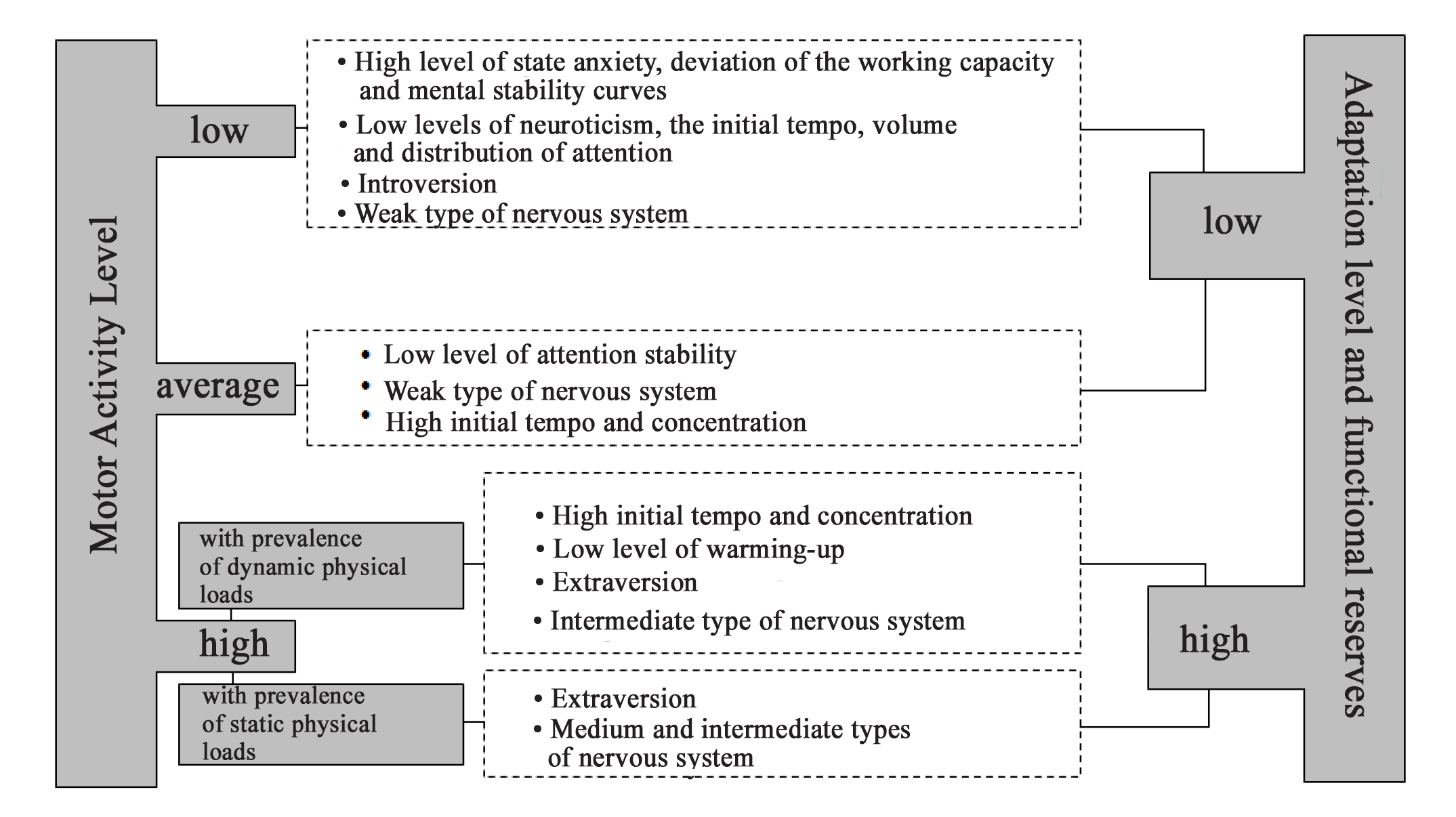 Figure – Psychophysiological features of persons with different levels of motor activity