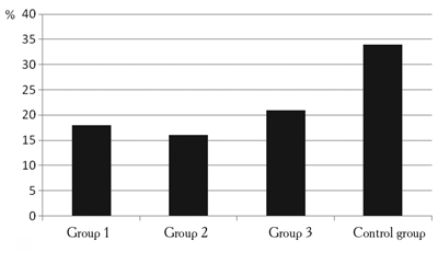Female students in the sections of interests (aerobics, fitness yoga, gym) during the experiment almost were ill very seldom, while in the CG students were more frequently absent from classes due to illness. This is confirmed by the data of the medical center: EG-1 - 18%; EG-2 - 16%; EG-3 - 21%. In CG, the index was 32% (Fig. 3).