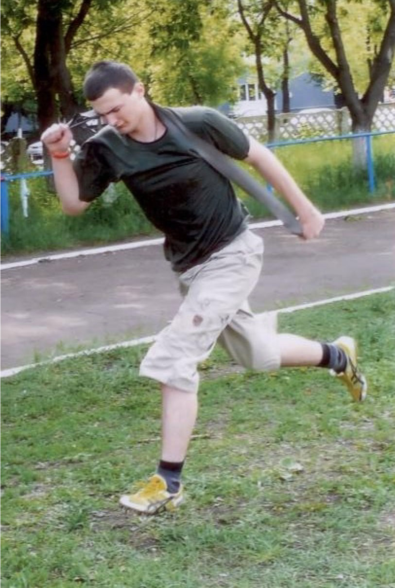It was assumed that a rubber bandage – over the neck and shoulder joints will increase the specialized physical load on arm muscles (Fig. 2). And given the unconditioned reflex bonds in cyclic movements (see above), without special instructions you can expect an automatic increase in the activity of the corresponding groups of leg muscles. We believed, the increase in the activity of leg muscles would, first of all, affect the strength (length) of the running stride.
