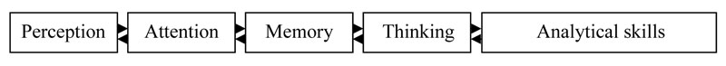 Understanding is associated with cognitive abilities conditioned by the level of the development of thinking. The problem of development of intellectual qualities has been considered by many authors [1, 5, 7, 12, et al.]. The findings of scientific publications show the dependence of sports results from the level of formation of the main intellectual personality traits such as: perception, attention, memory, thinking and analytical skills, the implementation of which can be represented as follows (Fig. 1).