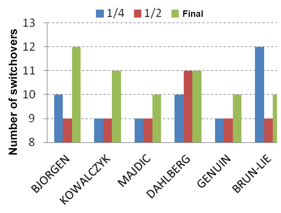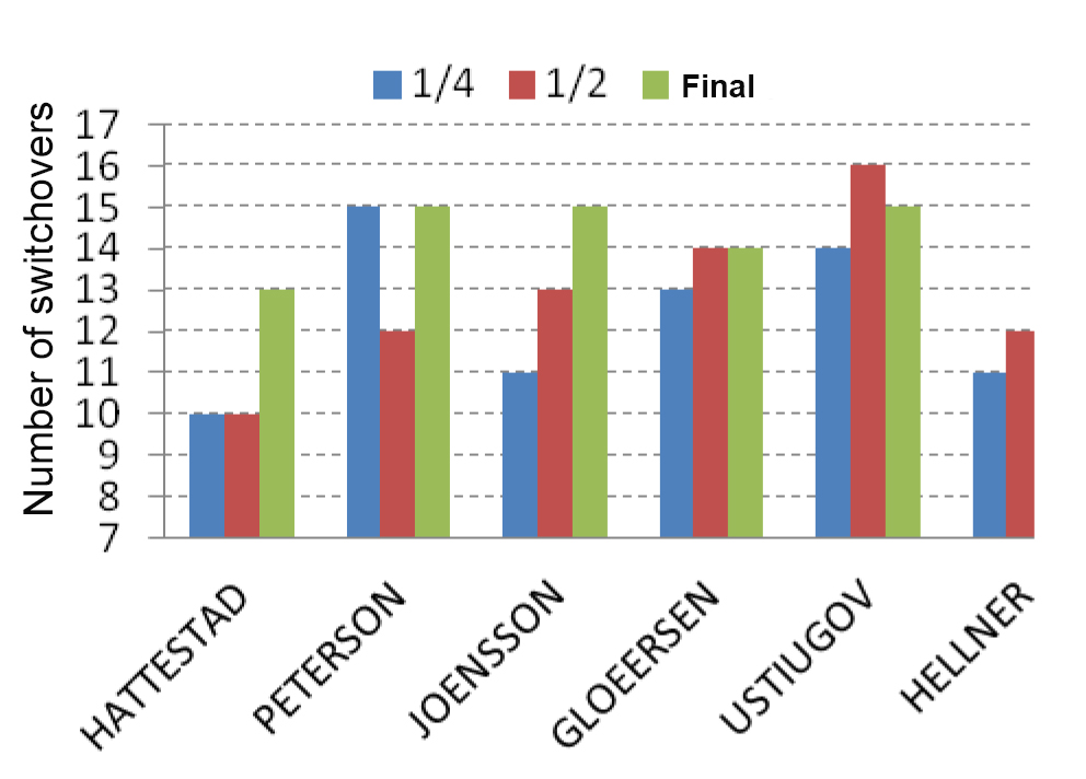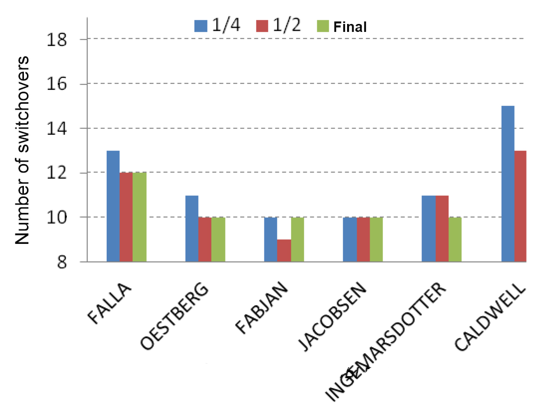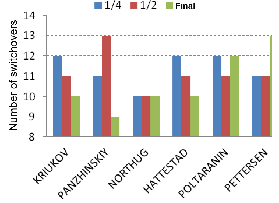 Figure 8. Skiing style switchovers (times) in the OG-2014 women’s skiing finals