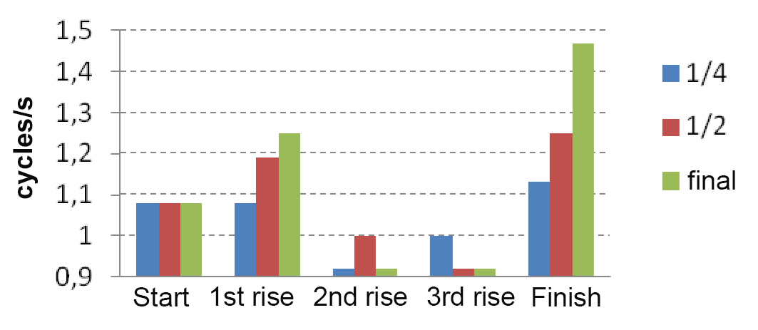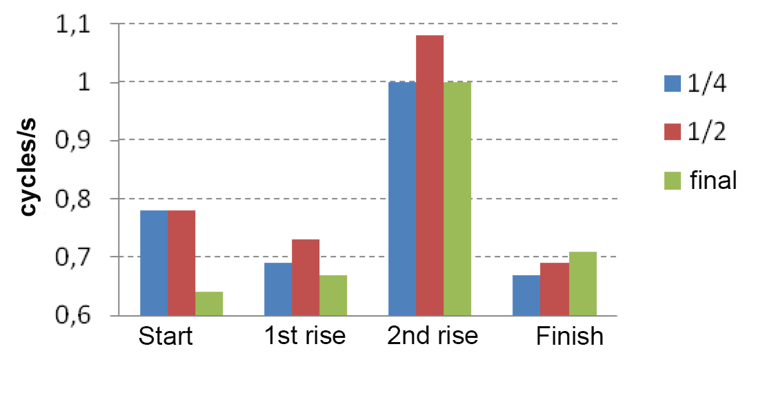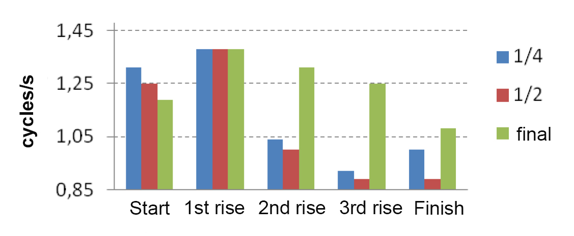 Figure 9. Movement frequency rates (cycles per second) on distance in the OG-2014 women’s skiing final (M. Falla, OG-2014 champion)