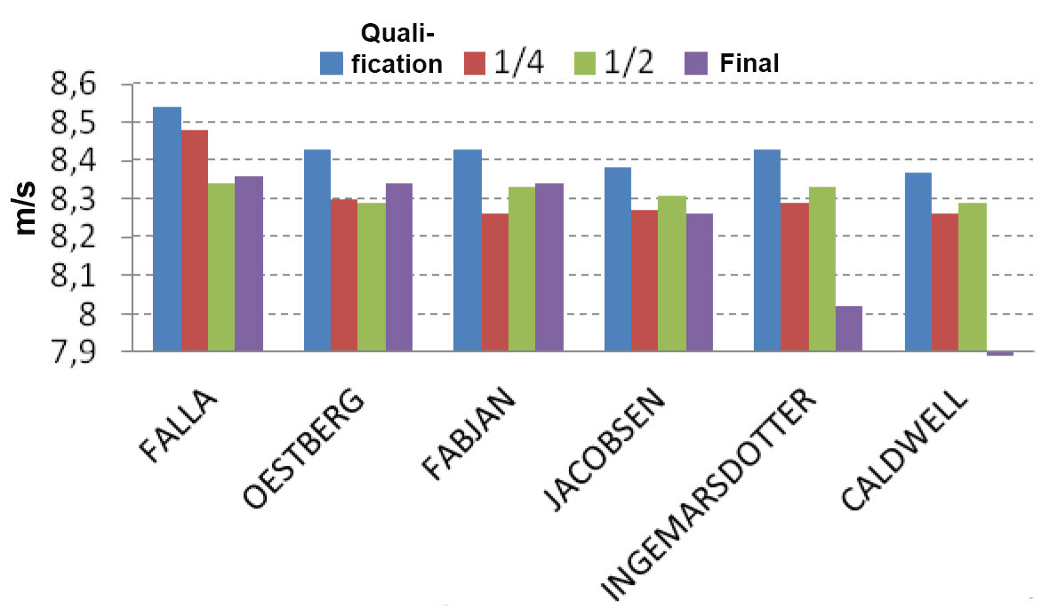 Figure 7. Tournament distance speeds in the OG-2014 women’s skiing finals