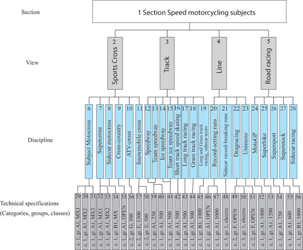 2. The worked classification of speed subjects contains kinds and names of motorcycling subjects and vehicle technical specifications.