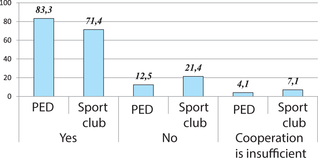 Figure 2. Responses to the question “Is there any cooperation of your student sport club (SSC) with the physical education department and academic sport club (if any)?”