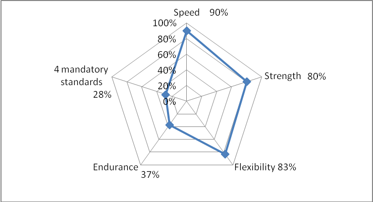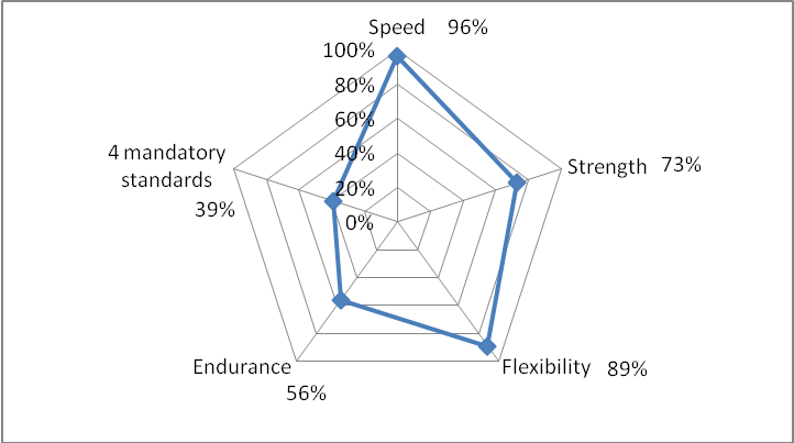 About 90% of male and 80% of female students successfully qualified for the badge characterizing a high level of development of their strength qualities. It is obvious that it is females who were most successful in the strength tests.