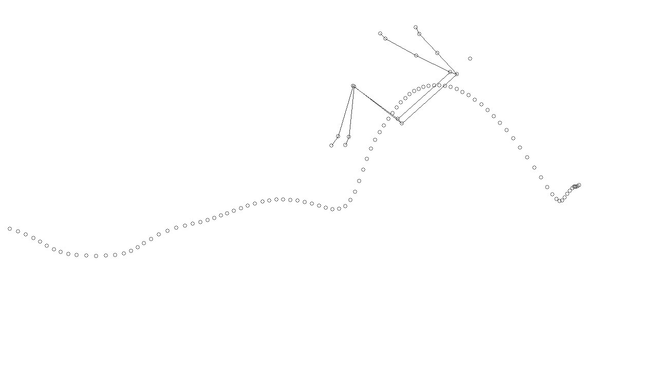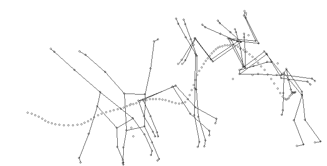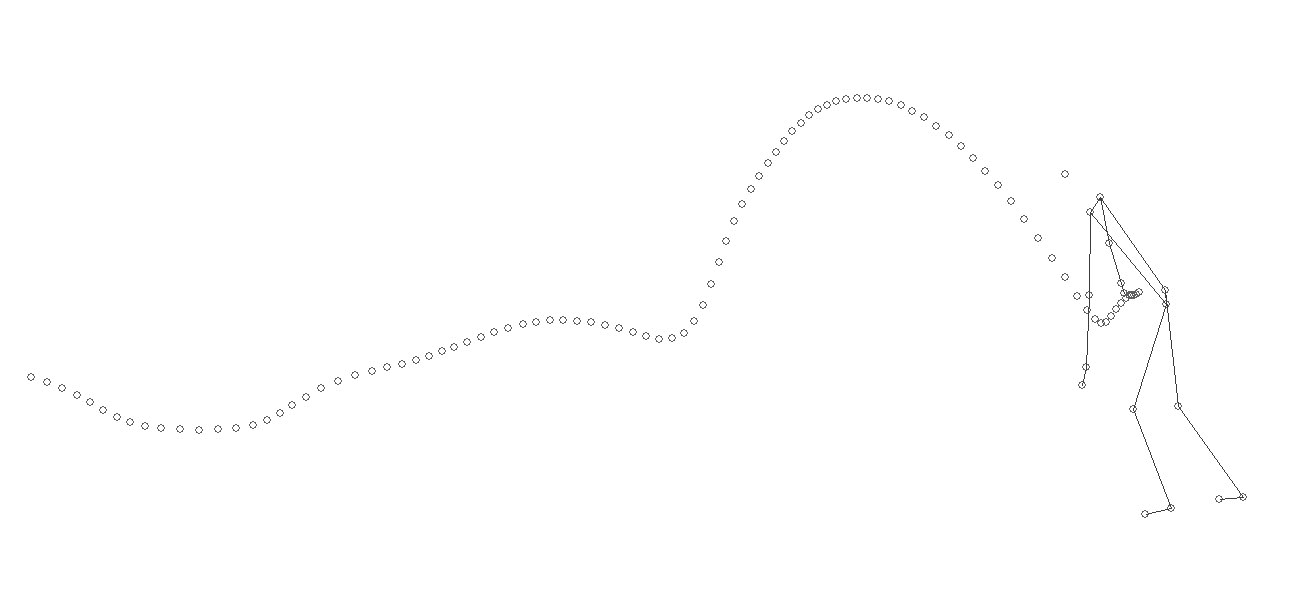 Figure 10 shows body CP in the phase of the final motor actions – stable landing on a beam (time 1,04 sec). Thigh-trunk angle is equal to 153,31°. Biomechanical analysis and pedagogical observations allow to conclude that the athlete demonstrates an elastically rigid interaction with the support that contributed to assuming CP – semi-tuck stride position with one leg in front of the other and body semi-bent forward, arms forward-downward.