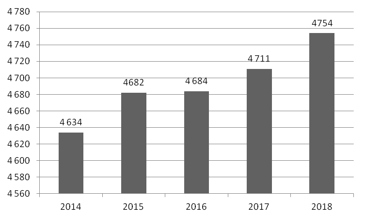 Figure 1. Municipal physical education and sport / heath group growth statistics of 2014-2018, numbers