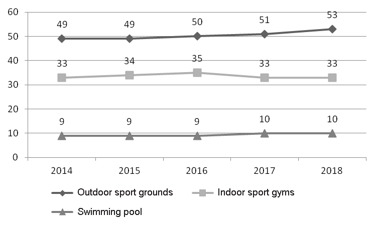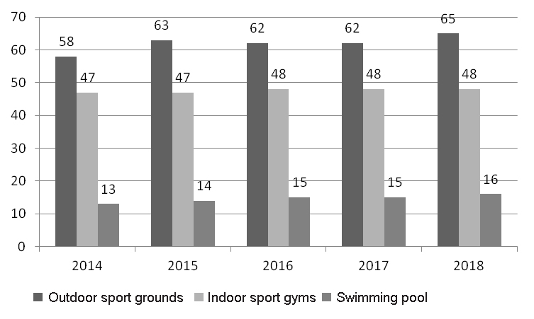 Figure 2. Municipal physical education and sport / heath assets development statistics for 2014-2018