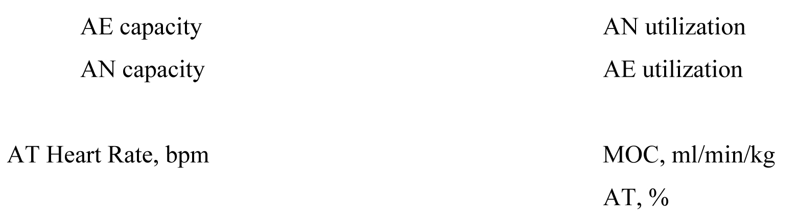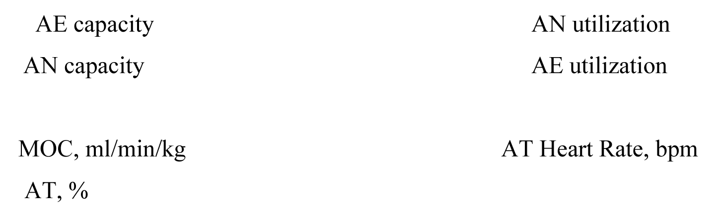 Some differences were detected in the AE capacity and AT indicators, %, but they were insignificant.