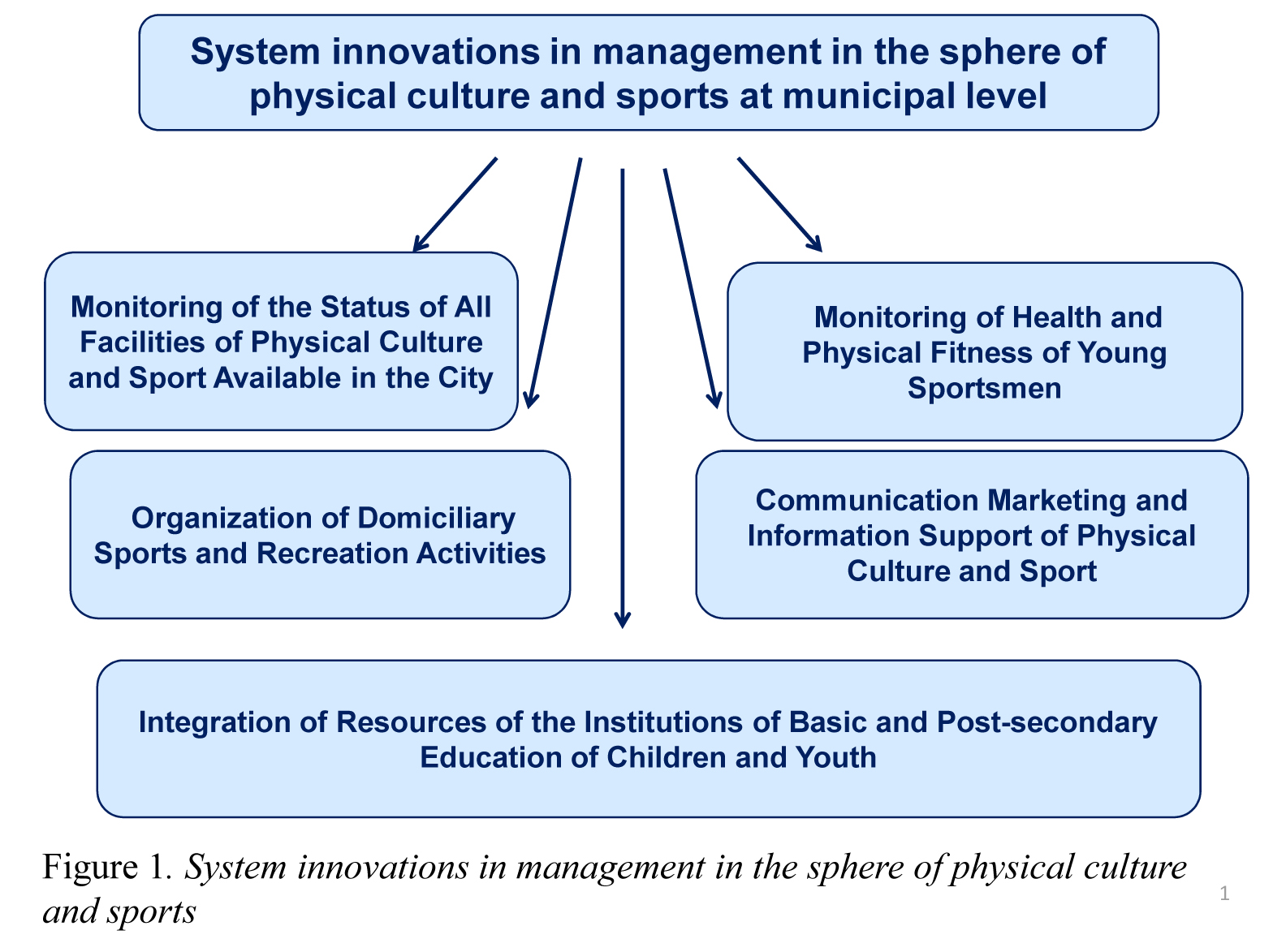 Previously, we have developed and provided partial theoretical validation of the concept of systemic innovations in the management in the sphere of physical culture and sport at the municipal level (6, 7), and now we would like to show the intermediate results of its implementation.