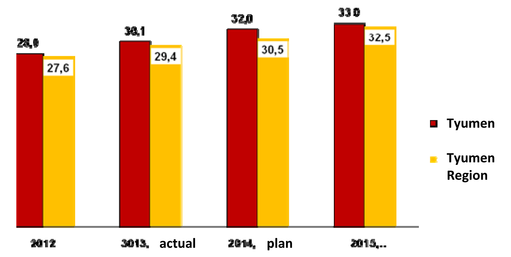 Results and discussion. The introduction of systemic innovations in the management in the sphere of physical culture and sport at the municipal level helps fulfill the strategic task of improvement of the quality and efficiency of the process of formation and preservation of healthy lifestyle of Tyumen citizens. That is why, today every third resident of the city is regularly involved in sports: 30.1% (201 000 people), which is higher than the regional level (Figure 2).