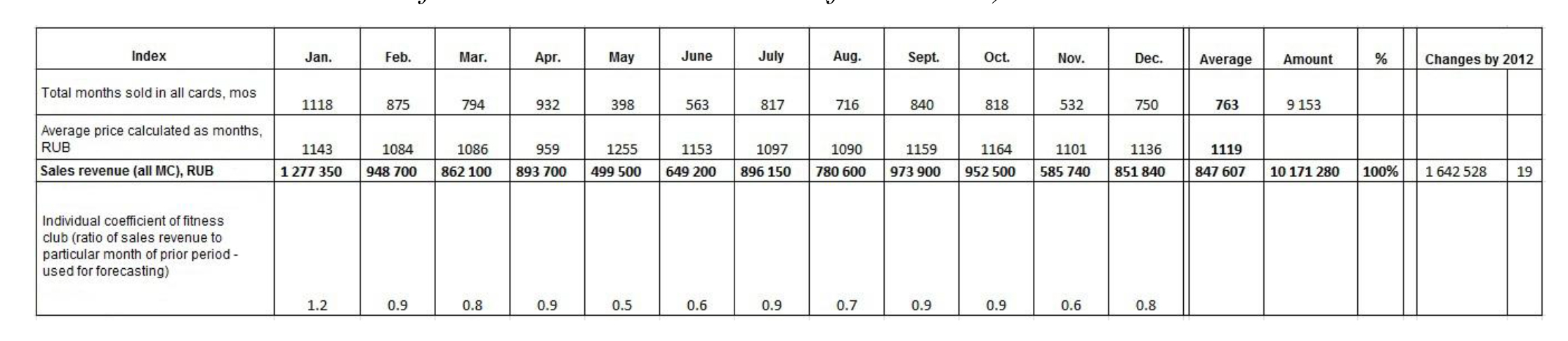 The sales flow, presented in Figure 3, is slightly different from that of the year 2012. It is not a deviation, but it testifies to the development of the club and reflects the effects of external and internal factors (for example, the result of administrative impact in the form of implementation of some new types of cards, price adjustments due to seasonality, promotion, etc.) on behavior and work of the club.