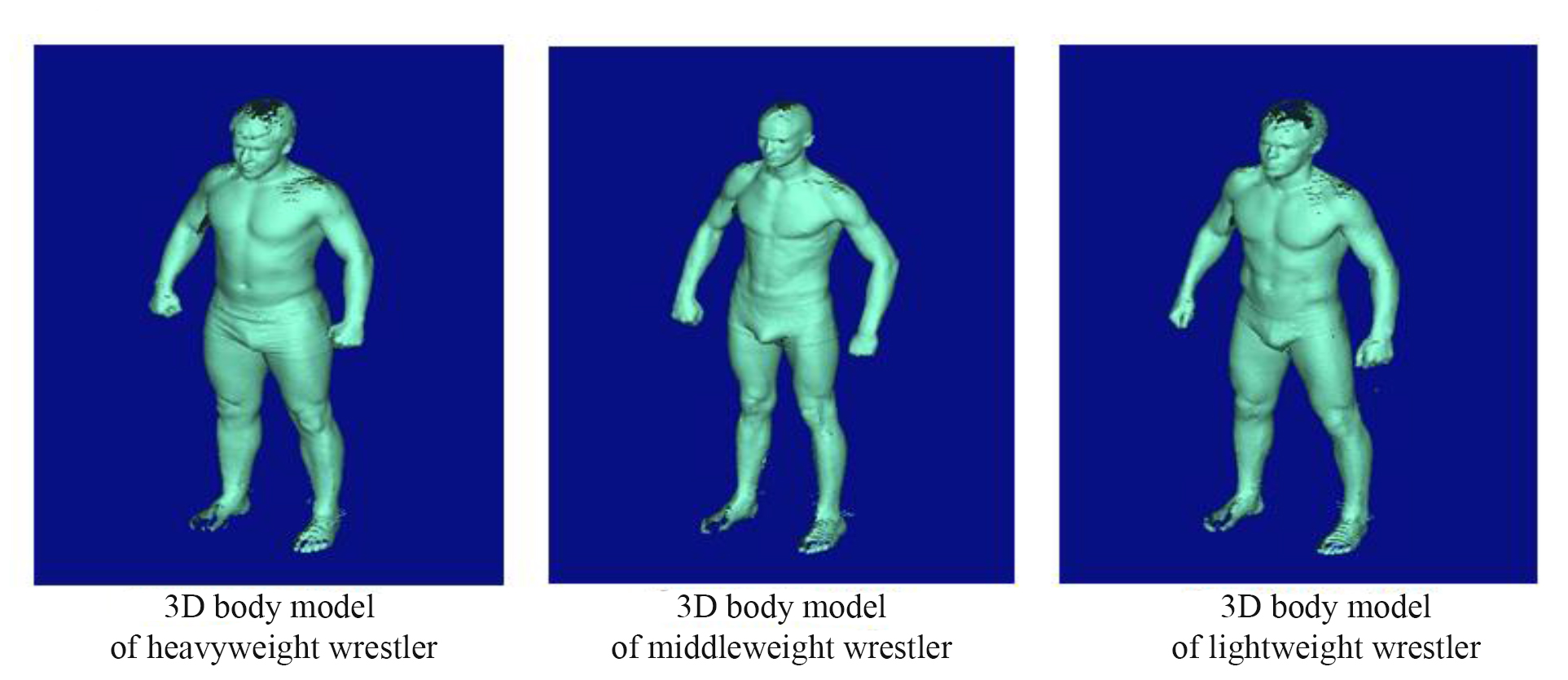 Fig. 1. Examples of three-dimensional anthropometric body models of judokas of different weight classes