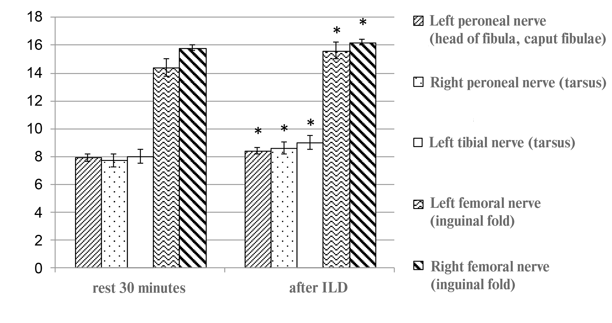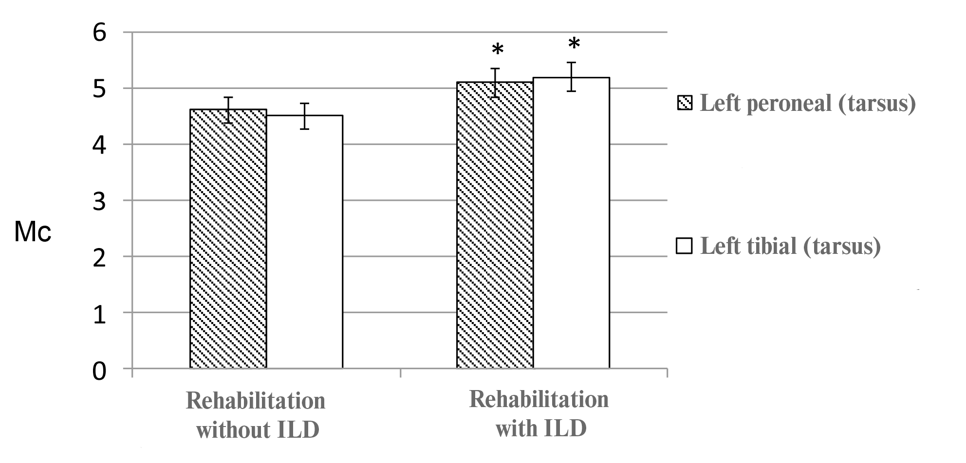 In the process of the instrumental lymphatic drainage therapy being applied for rehabilitation, the M-response rates showed reliable growths (see Figure 2 hereunder). The М-response rates for the neuromuscular contacts being on the rise may be indicative of the change in the induced electric activity of the muscles involved in the main motor action that facilitates the impulses being summated and the flexional responses being synchronized.