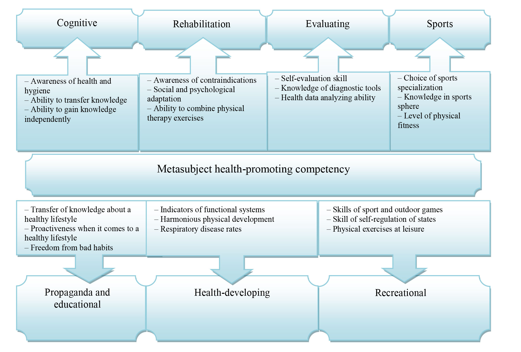 In current conditions, against the traditional practice of a standard comprehensive school, which activity is focused on the achievement of the learning outcome in the form of subject-specific competences and organization of a health-promoting environment, we believe that, according to the metasubject and eco-psychological approaches, the school mission should also be to recognize health as a fundamental object of education. Moreover, it is important to shift the focus from the organization of health-saving environment to the formation of a health-promoting (involving subjects’ responsible and active attitude) educational space, promoting the assimilation by pupils of the health-promoting essences and reflections, their personal development and self-actualization in the process of active partnership of subjects with each other and with the components of educational space [3, 6]. In our opinion, the health-promoting school educational space is to stimulate in a guided way the growth of adaptive capabilities of pupils by enhancing their health, contributing to an increment of their productive activity and an increase in the level of the health-promoting competence, as well as successful adaptation and socialization within an educational institution.