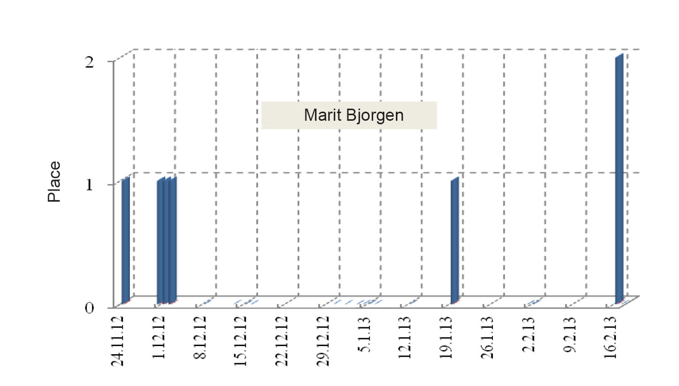 Figure 2. The Marit Bjorgen’s (NOR, 3 times world champion) record of competitions in the WCS prior to the 2013 WC