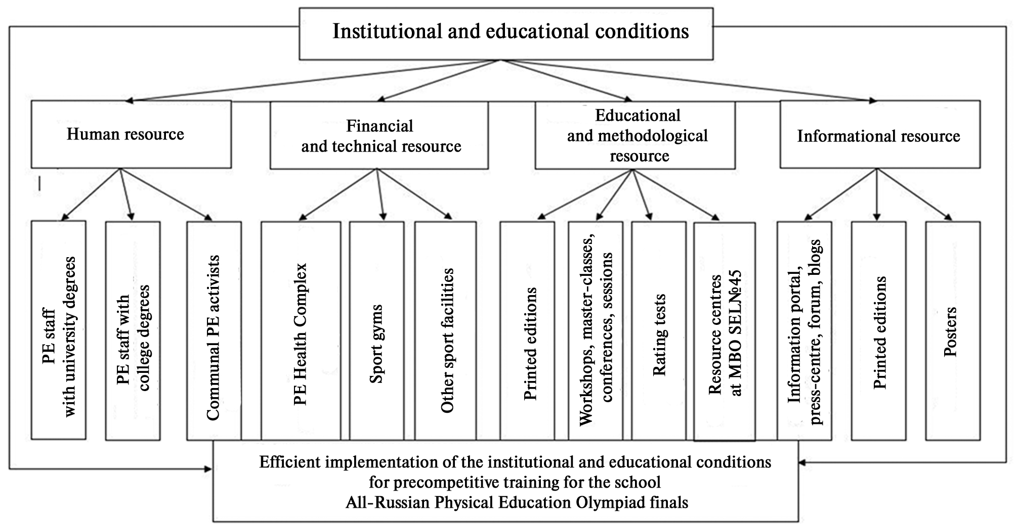 Figure 1. Institutional and educational conditions for precompetitive training for the school All-Russian Physical Education Olympiad finals