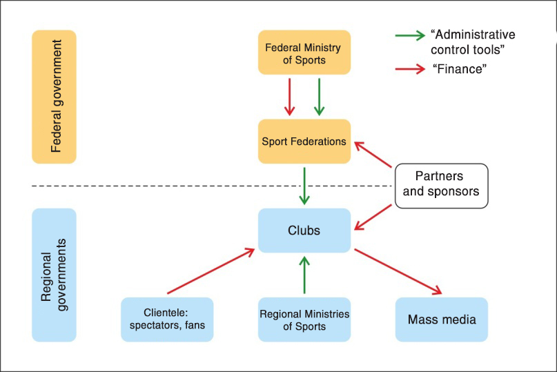 Background. Governmental control policies and practices may be pivotal for the process control situations in different sectors of social life including the sports sector, with the governmental control mechanisms growing both with the growing expenditures for the sports sector and with the expanding regulation of different social relationships geared to exercise the constitutional rights of people for physical culture and sports services. It was in November 2016 that the national Parliament approved the Federal Law “On the changes and amendments to the Federal Law “On Physical Culture and Sports in the Russian Federation” intended to regulate the elite and professional sports” [1], and the Federal Law “On the changes and amendments to the Criminal Code and Criminal Procedural Code of the Russian Federation intended to step up the liability for violation of anti-doping rules” followed by the Federation Council’s approval [2]. The modern Russian sport system is basically composed of the following three sectors [4]: mass sports; professional sports; and elite sports. We consider herein the professional sports sector due to a variety of reasons. Professional sports are presently ranked among the most popular and expensive sport sectors of the Russian sport system, and this is the main reason why they have been lately subject to an increasingly high interest of the national researchers.