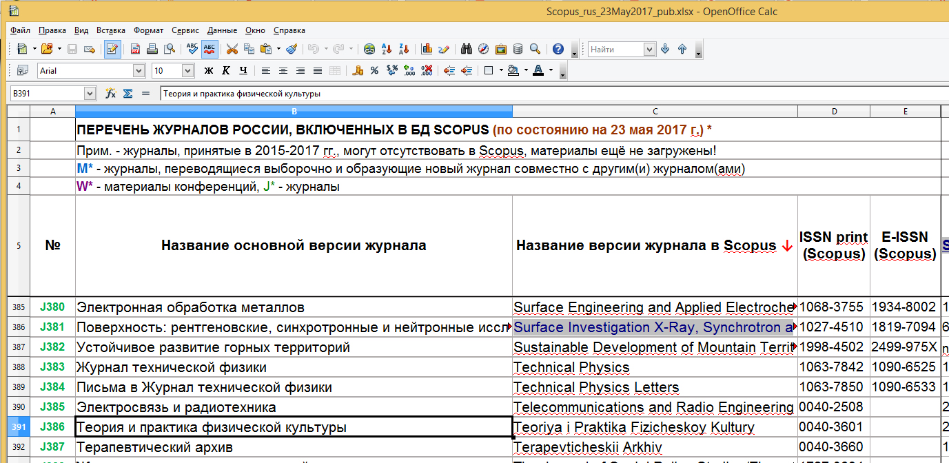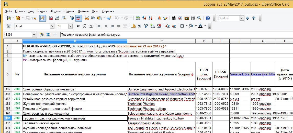 Список российских журналов, индексируемых в Scopus (скачать в формате xls, обновлен - апрель 2017 г)