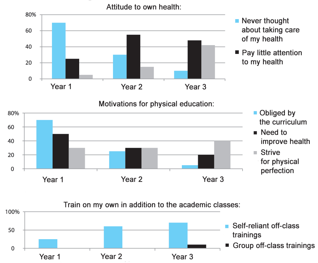 - The health-deficient students acquired good knowledge of their own bodily specifics and developmental needs; and mastered basics of the special physical training techniques and practices to improve their health conditions; and the progress facilitated their health motivations and values being built up: see Table 2; and