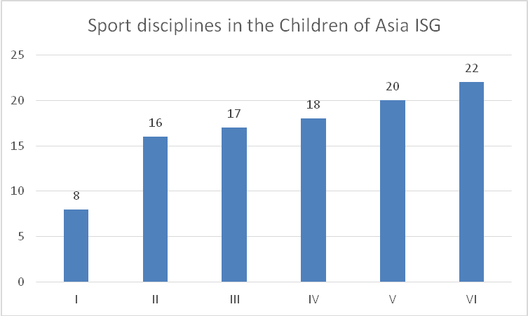 Figure 4. Sport disciplines in the Children of Asia International Sports Games