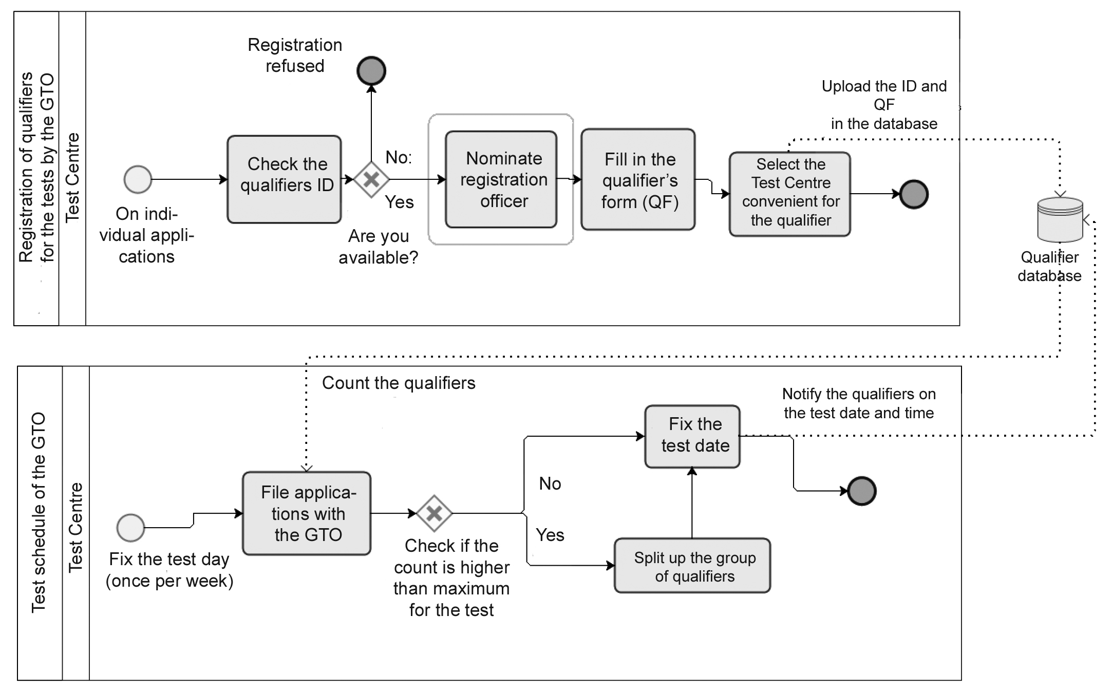 It is the existing economic development imbalances across the regions of the Russian Federation that may complicate the government-supported physical education and sport service process management model being implemented on a wide scale. The model may be applied to develop the service process charts with the lists of the resources claimed by the service elements on the Federal level; with the resource items being further detailed on the regional and municipal levels; followed by the process automation options being considered by the relevant local management bodies.In the above case we have two sub-processes correlated by the data exchange via the automated database of qualifiers for the GTO Test process. The qualification process produces a List of Qualifiers with their primary individual data fixed in the database followed by the GTO Test Centre decision on the test schedule.