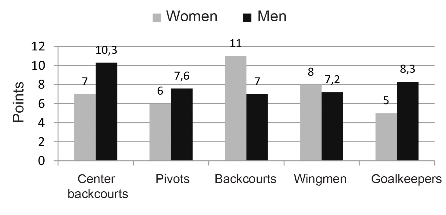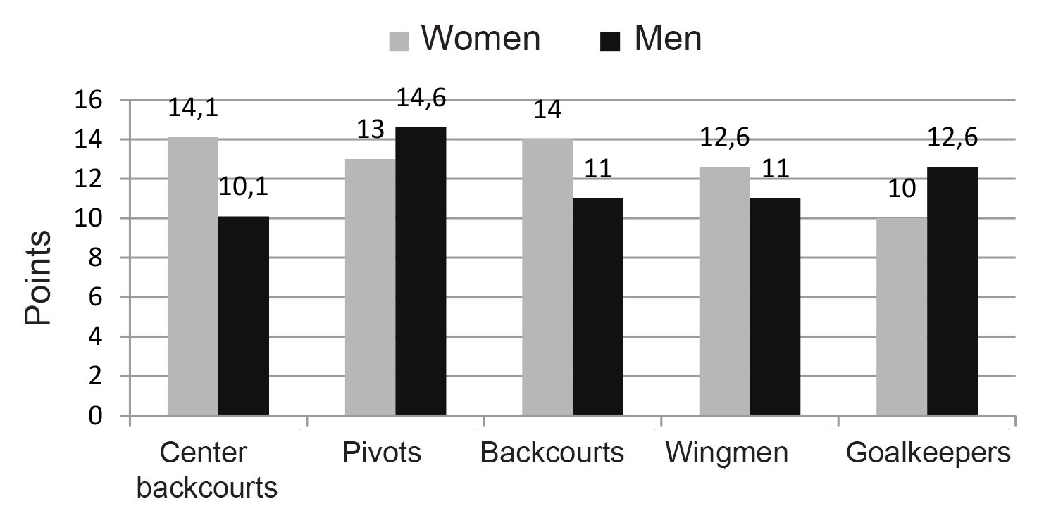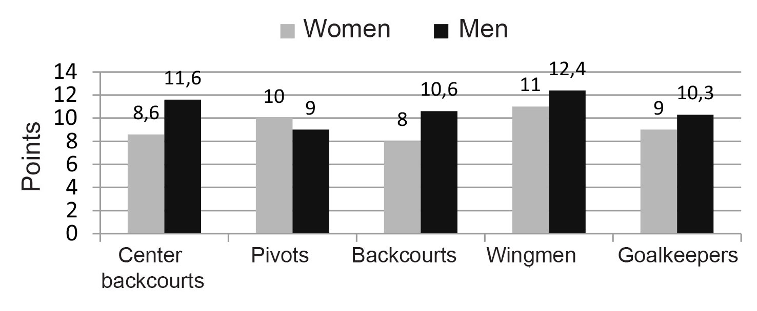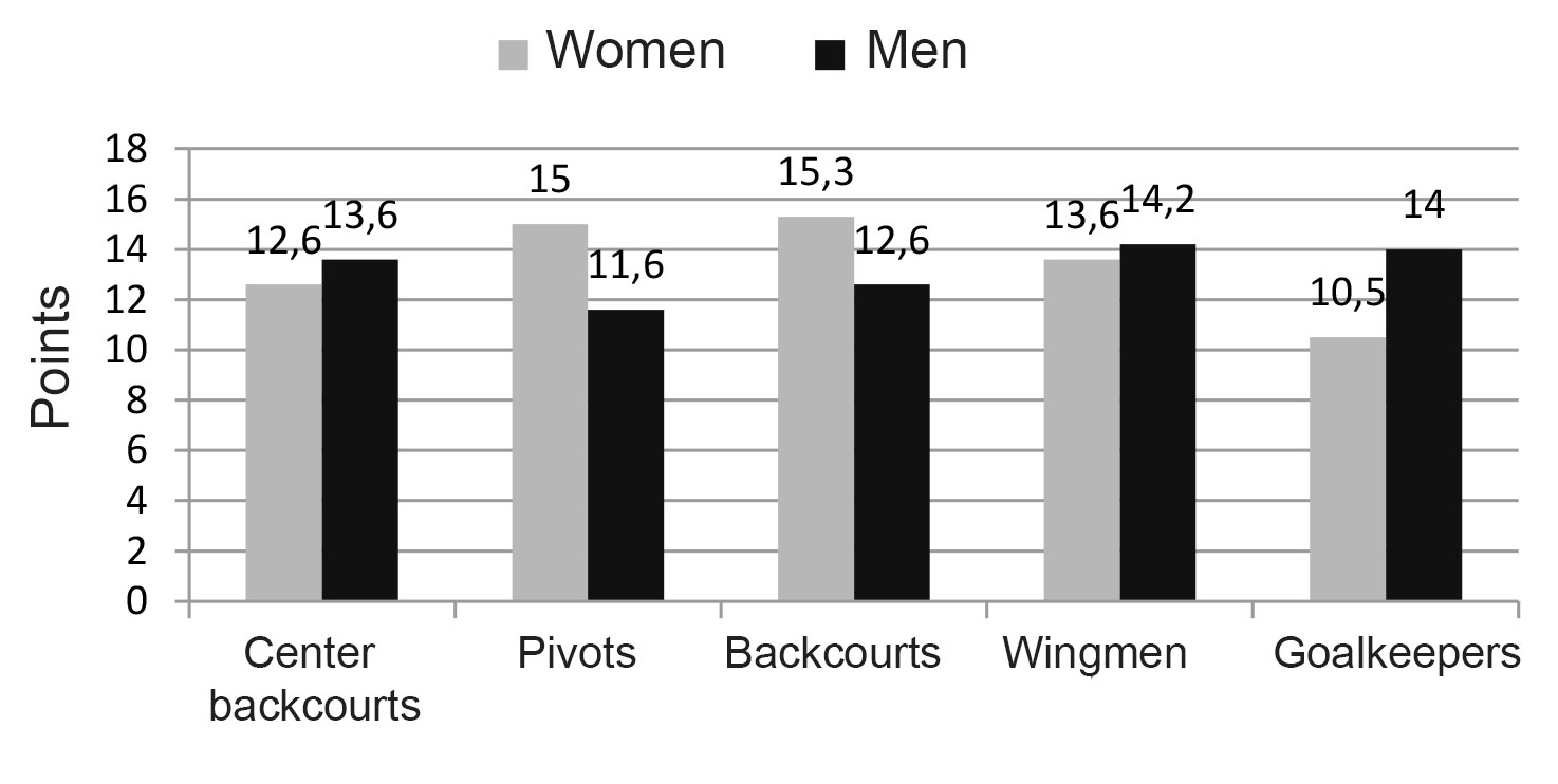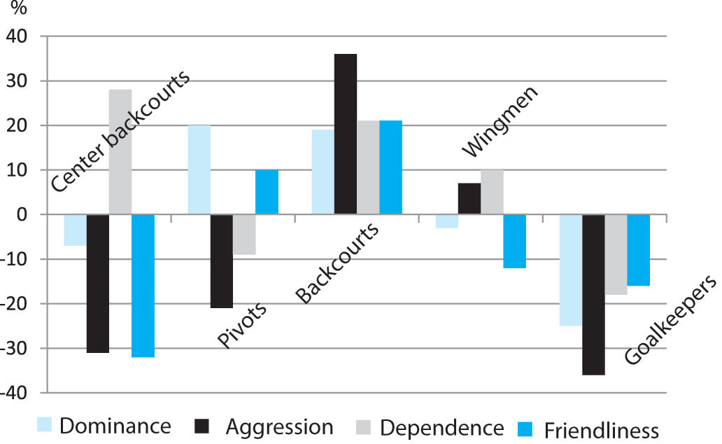 Dominance and aggression were found more expressed in the male second-line players (backcourts, wingmen and goalkeepers) versus female.