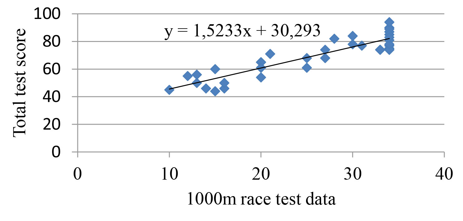 Figure 1. Linear regression for the total test score versus the 1000m race test rate