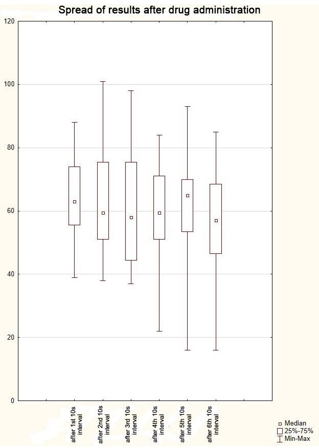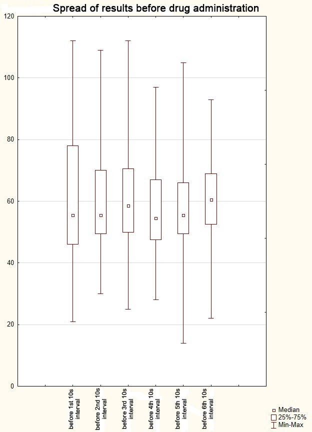 The next stage of our research was to provide a graphic representation of the data obtained before and after the drug administration with the help of the hardware and software complex STATISTICA (Figures 1 and 2).