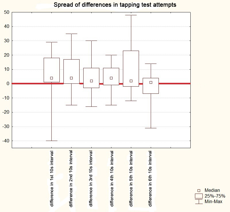 Fig. 3. Diagram of spread of differences in tapping test attempts
