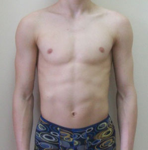 Photo of 16 year-old patient M., engaged in Greco-Roman wrestling for 4 years (a), and his lumbar spine computer tomographic image (b). Pars interarticularis defect in the LV vertebra (spondylolysis)